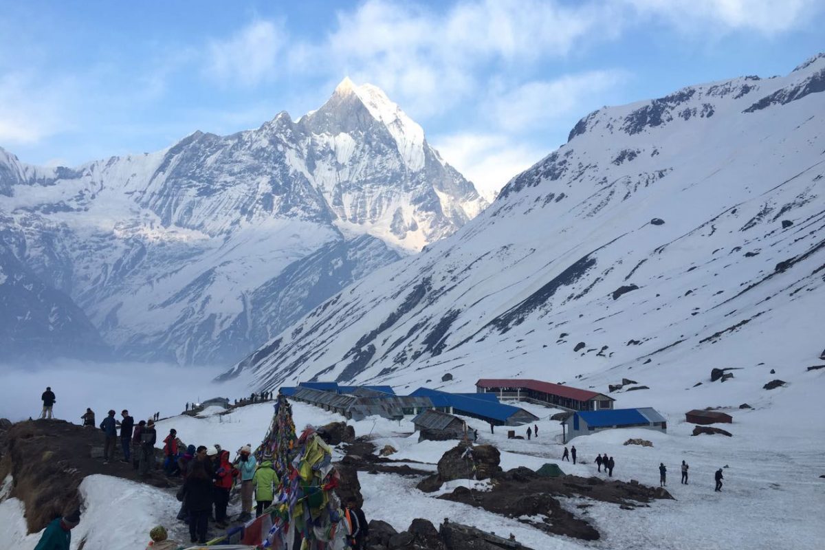 You'll feel the bite of the thin air today as we climb high above our starting point of Himalaya Hotel, overlooking a river far below. We'll scale the lateral moraine of a shimmering glacier and then come down the other side to the glacier bed before reaching the Annapurna Base Camp. A breathtaking 4,237m above sea level, this is our stopping point for the night. It's time to reap the rewards of your hard trekking work! Miles above earth, we have all day today to wander the base camp and drink in the beauty and majesty of Annapurna.The sunrise and sunset are spectacular displays of natural theater, and not to be missed. Make sure your camera is charged!