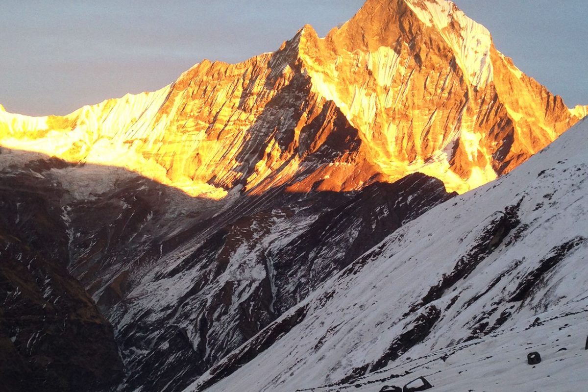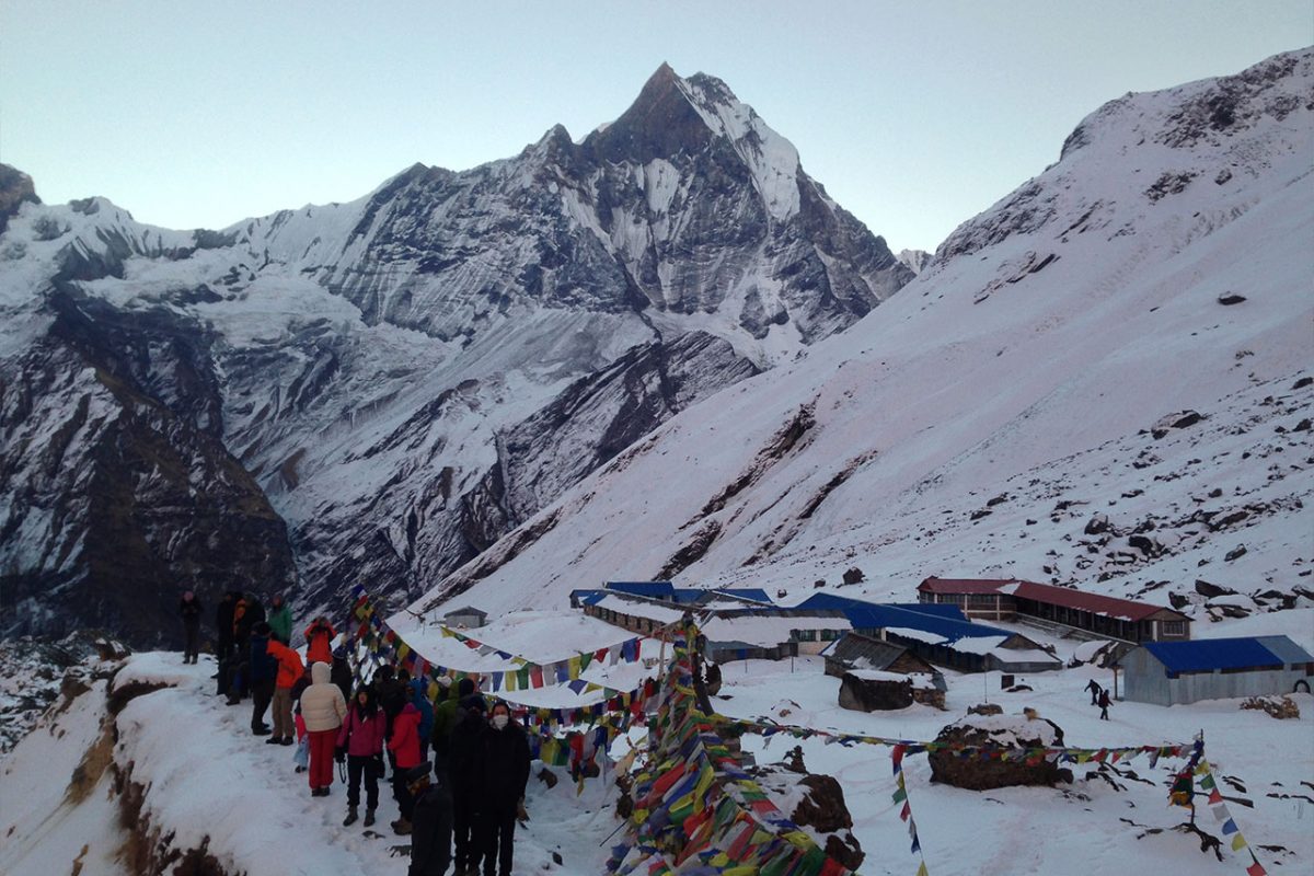 Climb gently through a river bed then over a steep trail over to the mountain side. The hike from Bagar to Machhapuchhre Base Camp is somewhat strenuous. From Machhapuchhre base camp we get excellent views of the majestic Machhapuchhre along with Mt. Hiunchuli, Annapurna South, Annapurna I, Annapurna III, Gandharvachuli and Gangapurna which is certainly a rewarding experience. The vegetation disappears on our way to ABC and the path widens as we enter the Annapurna sanctuary. From here, we get sensational views of the near-vertical south face of Annapurna towering above us. The sanctuary boasts of a dynamic view without anything impeding the 360-degree panorama. From the base camp we again get to savor mesmerizing views of the Machhapuchhre, Annapurna South , Annapurna I, Hiunchuli and other peaks. Overnight at Annapurna Base Camp.