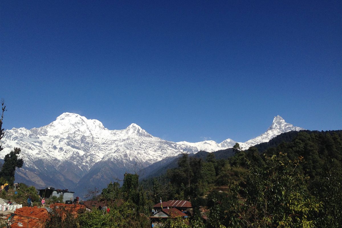 At this juncture, we climb up for around an hour up to Kimrungdanda. On the way, we can enjoy great views of Annapurna South, Hiunchuli, Fishtail Mountain (Machhapuchhre) and Ganggapurna. A steep descent takes us to the Kimrong Khola. After another steep ascent from Kimrong Khola to Chere Danda, we descend for a while and then it’s a gentle walk to Chhomrong. Chhomrong is a beautiful village located on the lap of the giant Annapurna